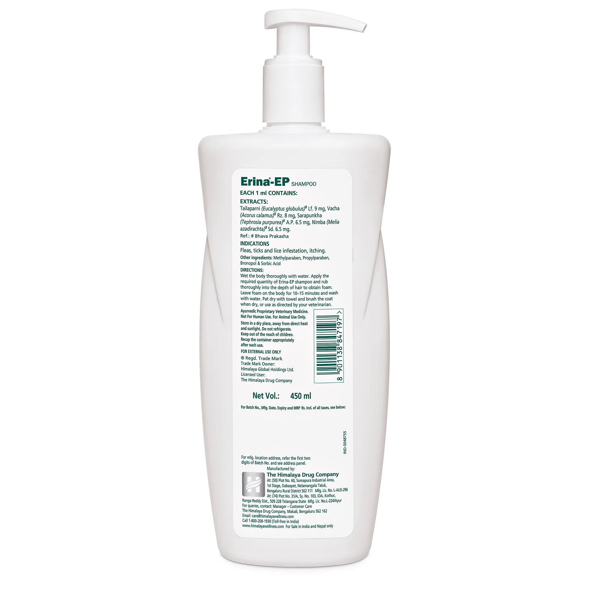 Erina EP controls ectoparasites (external parasites) like ticks, fleas and lice in pets.